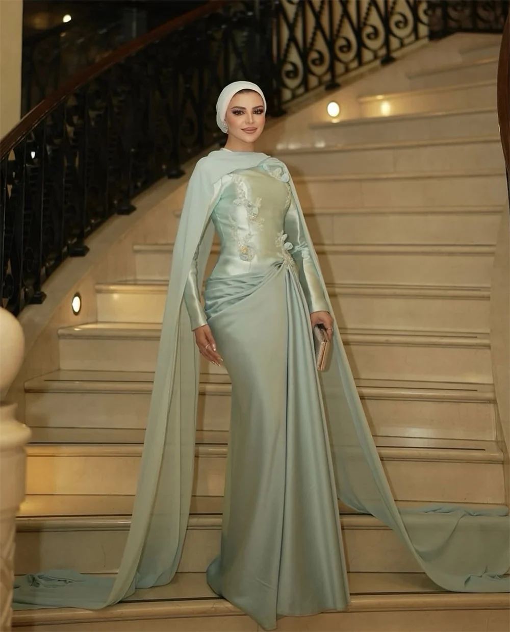 Contessa Dubai Custom Muslim Style Prom Dress With Elegant scarf Vestidos de noche Flower embroidery Formal evening dress 2025